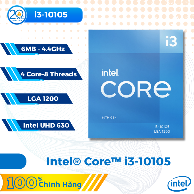 Mua sản phẩm bộ vi xử lý/ CPU Intel Comet Lake Core i3-10105 (4 Cores 8 Threads up to 4.40 GHz 10th Gen LGA 1200) chính hãng tại vitinhscom.vn | Hỗ trợ bảo hành 36 tháng