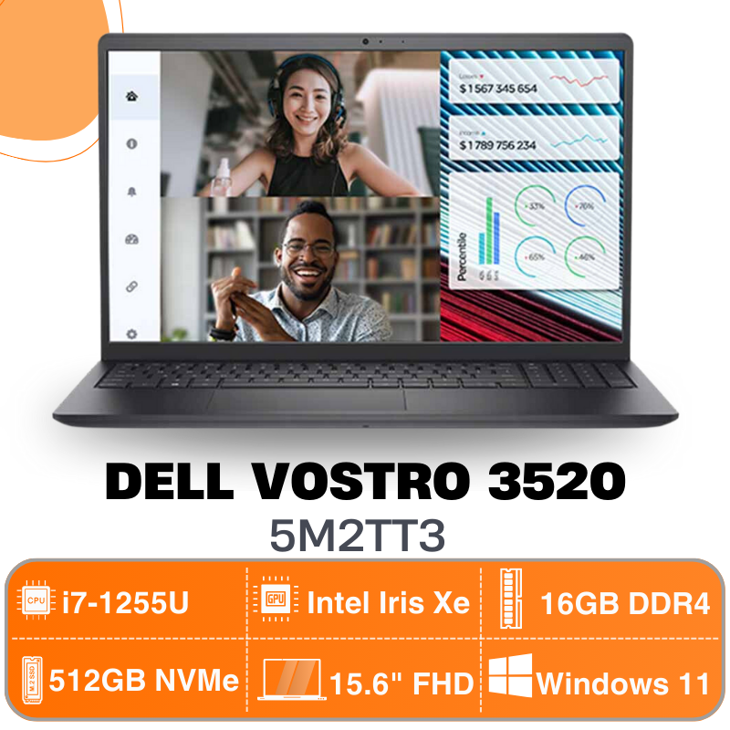 Laptop Dell Vostro 15 3520-5M2TT3 (15.6" FHD | i7-1255U | 16G | S-512G | Win 11 + Office 21HS | Xám)